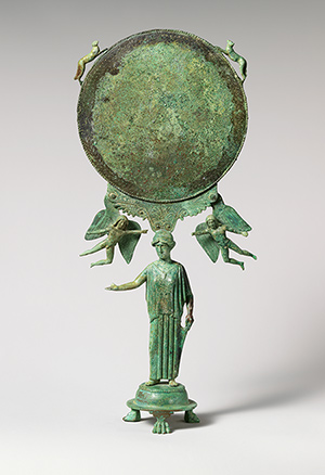 Ancient Greek mirror with a Support in the Form of a Draped Woman, mid-5th century B.C.