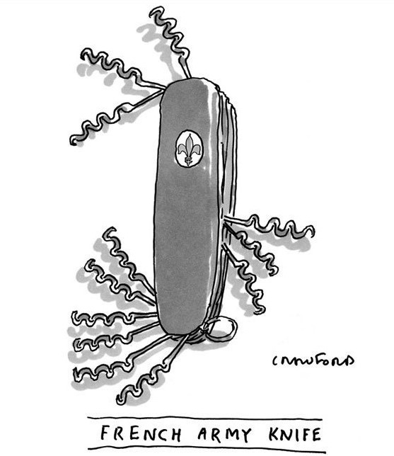 I have had many heated debates about this existential question and the world divides into roughly two catagories: many of my friends who are in the film business, choose Leatherman, because of its sturdy tools. The others choose SAK (Swiss Army Knife), because of its versatility; it is so much more than just DIY tools! Of course the French only need the following version: