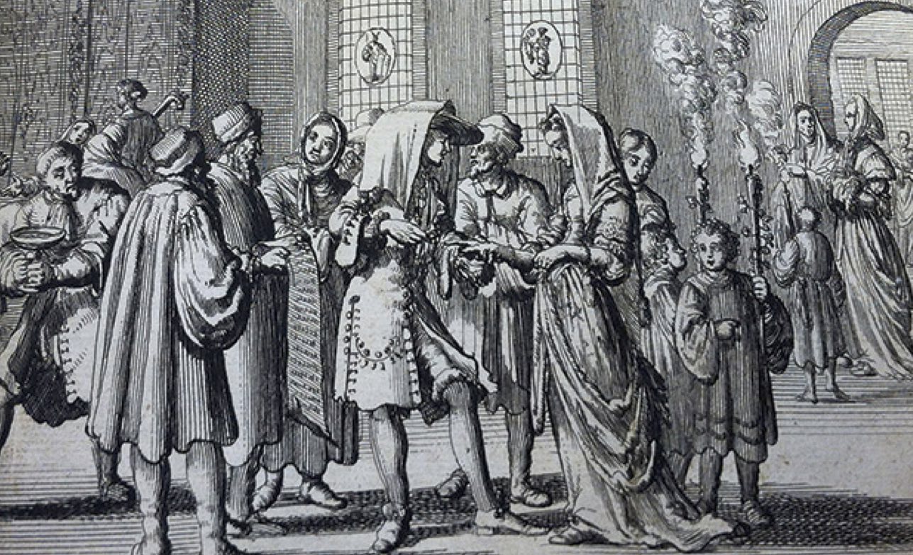 Etching by Jan Luyken, “Kerk-Zeeden ende Gewoonten die huiden in gebruik zijn onder de Jooden” (Church rules and habits practised today by Jews) – Amsterdam – 1683.